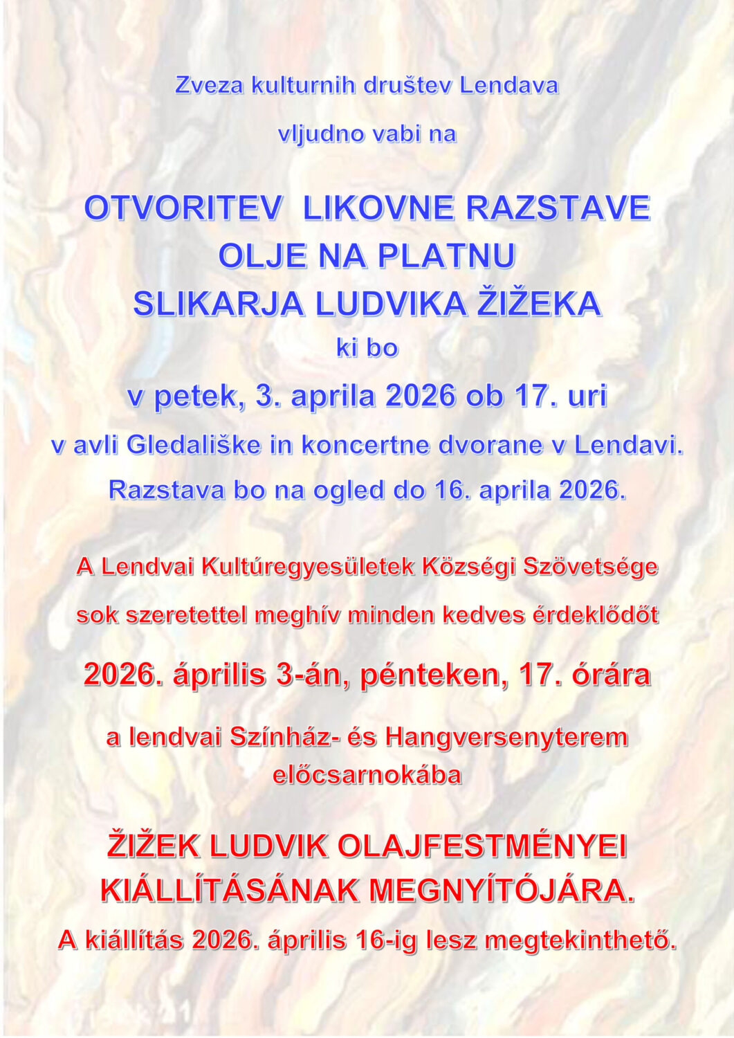 ki bo v petek, 3. aprila 2026 ob 17. uri v avli Gledališke in koncertne dvorane v Lendavi.